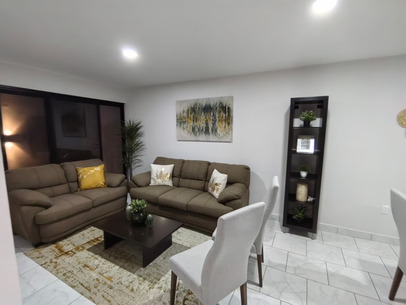 Cocina equipada, sala comedor, 4 habitaciones ( una de ellas en planta baja con baño completo), medio baño de visitas.